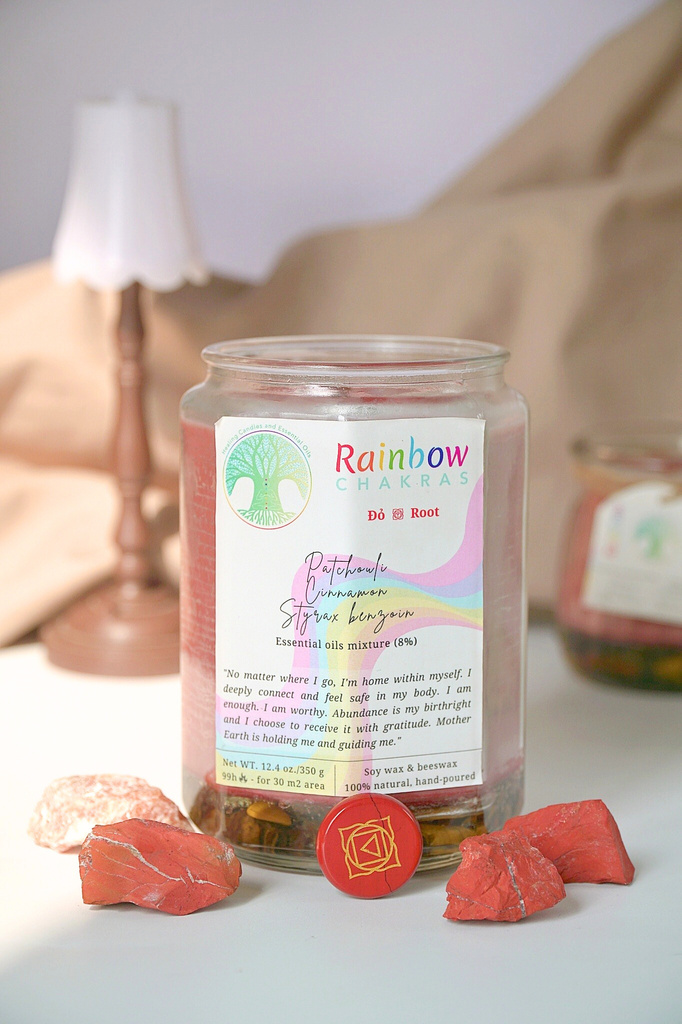 Tương ứng với 7 luân xa cơ bản, dòng nến và tinh dầu bao gồm 7 loại: đỏ, cam, vàng, lục, lam, chàm, tím.