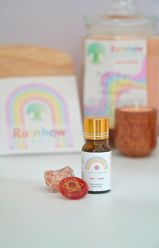 Được dùng như một liệu pháp chữa lành, nến và tinh dầu Rainbow hỗ trợ cân bằng luân xa kết hợp trong trải nghiệm thư giãn bằng mùi hương.